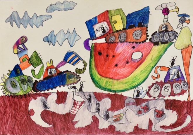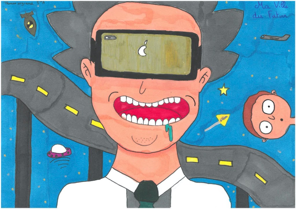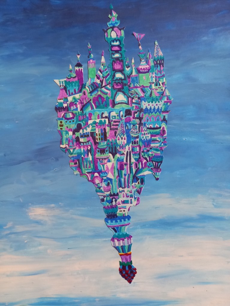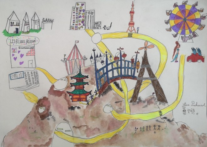 Ma ville idéale du futur – Aquarelle et feutre , 30 x 40 cm